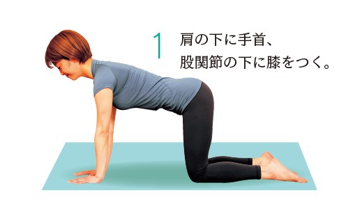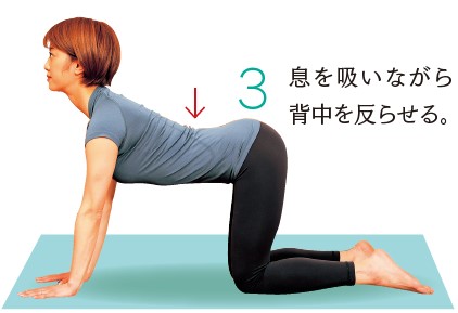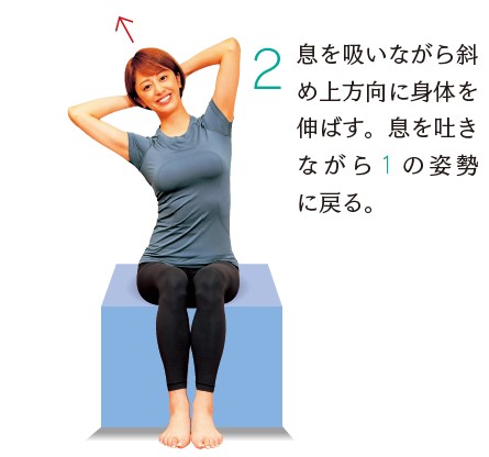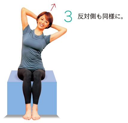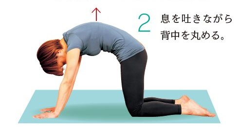 お尻から頭を遠ざけるように気持ちよく伸ばす。縮んだ首が伸び、頭が軽くなる。