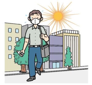 マスク熱中症に注意‼ 屋外で人と十分な距離(2m以上)を確保できる場合は適宜マスクをはずしましょう