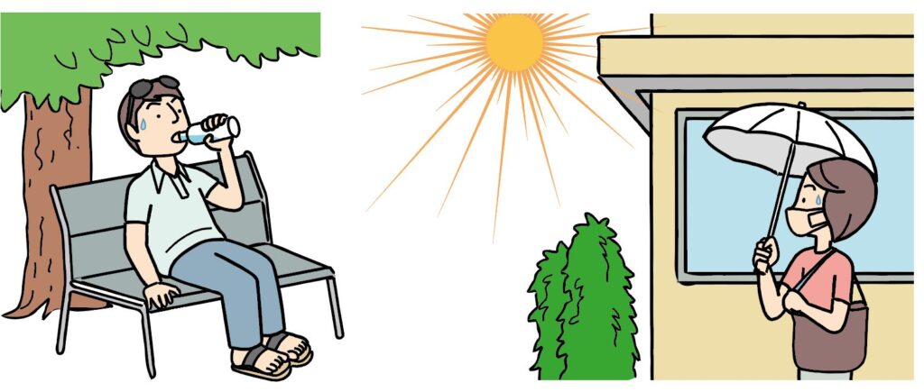 ● 外出時は涼しい服装にし、日傘や帽子を使用する。