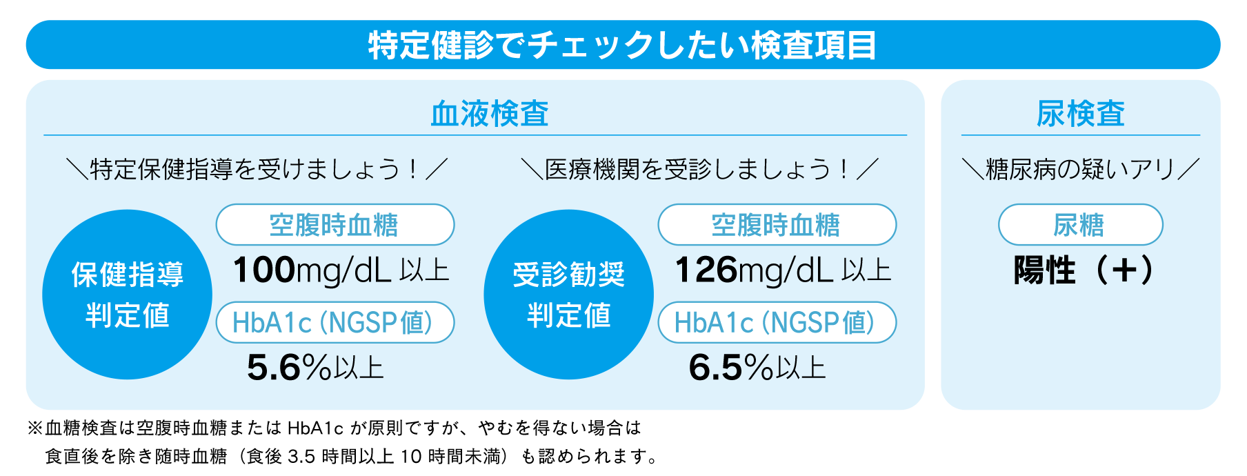そして一度糖尿病になると、基本的に完治することはありません。医療機関での適切な治療や服薬に加え、食事・運動療法で血糖値をコントロールしながら生活することになります。特定健診で「高血糖」と判定された方は、糖尿病予備群です。糖尿病を発症する前に、今から改善に取り組みましょう。