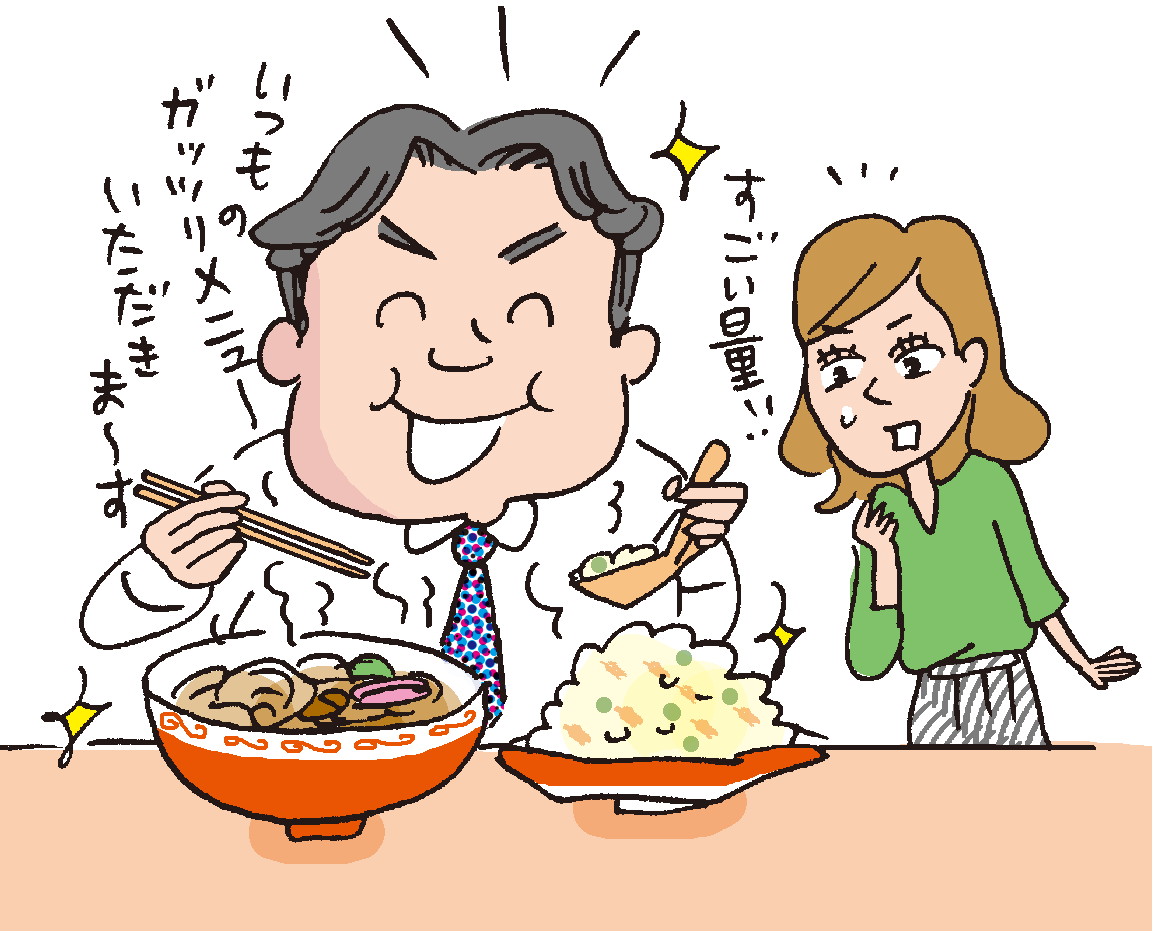 高血糖の人がとくに気をつけたいのは、外食のメニューに多い「ラーメンとチャーハン」「パスタとパン」などのダブル炭水化物と、糖質の多いおかずやサラダ(コロッケや餃子、ポテトサラダなど)です。厚生労働省の「日本人の食事摂取基準(2020年版)」では、炭水化物から摂取するエネルギー量が総エネルギー摂取量の50~65%になるよう推奨しています。たんぱく質や脂質もバランスよくとりましょう。