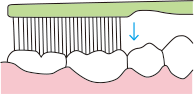 かむ面の溝の中に歯ブラシの毛を差し込むように動かす。