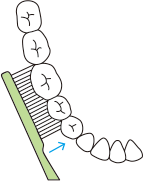 その2 一筆書きの要領で、上下の歯をそれぞれ奥から順番にみがいていく。