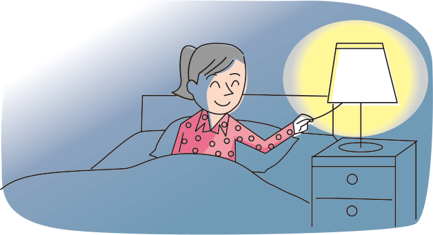 暖色系の照明や間接照明に切り替えて部屋の明るさを落とす