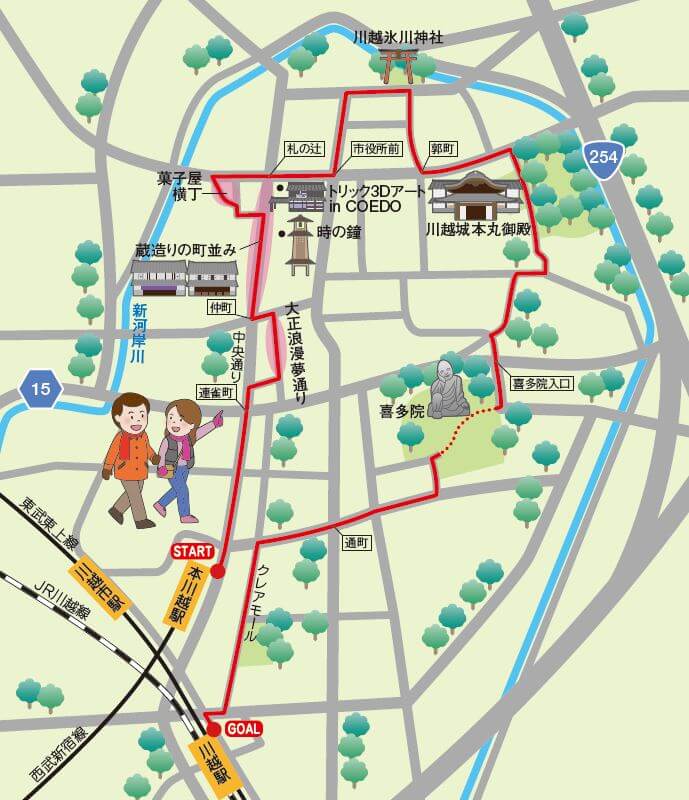ゆったりと小江戸・川越散策を楽しんだら、現代の風景、全長約1㎞のにぎやかな商店街クレアモールを通って、川越駅にゴールだ。